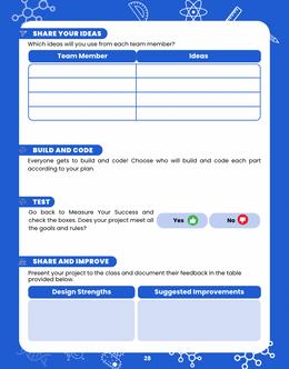 1.Readthe“ShareandImprove”sectionwithyourstudentsandexplainthatthey’llbesharing their projects to get feedback from peers Remind them that feedback helps improve ideas, notjustevaluatethem.
