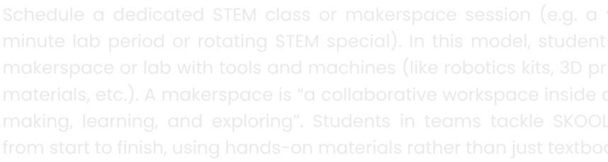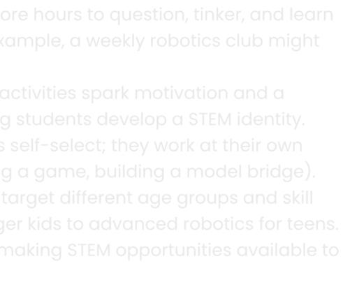 ProvideoneSTEMkitpersmallgroup. Encourageteamworkbyhavingstudentsco-design andco-buildprojects.