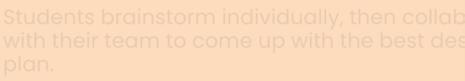 Studentsbrainstormindividually,thencollaborate withtheirteamtocomeupwiththebestdesign plan.
