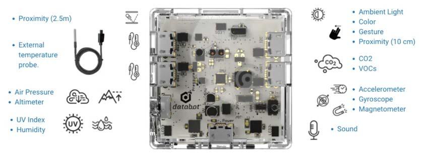 Databotisacuboidwith16sensorsthatcansenddatatoafreeapplication calledVizeeyforvisualization.
