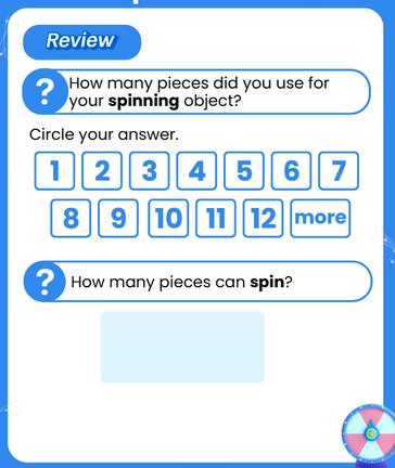 1.Readthefirstquestionaloud Then,have learnerspointtoandsaythenameofeach number Asklearnerstosharewhytheythinkthe word“more”islistedafterthenumber Have learnerscountthepiecesontheirseconddesign andcircletheiranswer.