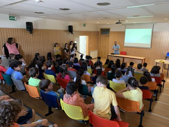 Na segunda parte da atividade – em sala de aula – os alunos continuaram a resolver o guião do aluno, focando-se nos seguintes aspetos: Gestão sustentável da água; Offset de emissões de CO2; Som e as suas implicações no trabalho