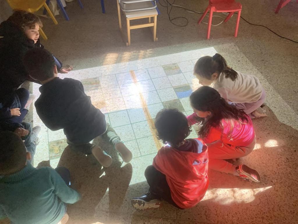 Os alunos realizaram exercícios práticos de lógica programática com suporte a robôs chamados Blue-Bots, passando por diferentes pontos de Mangualde projetados nos projetores de chão