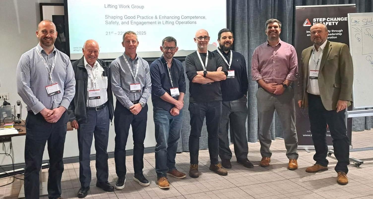 Left to Right: Alan McIntyre (SCiS), Trevor Gregg (HSE), Chris Stuart (EnQuest), Chris Woods (Karrdale), Colin Duncan (Harbour, Lifting WG Co-Chair), Lee Chapman (Ithaca, Lifting WG), Scott Moffatt (Why Human Factors), Craig Wiggins (SCiS), Stuart Smith (Wood) not in photo