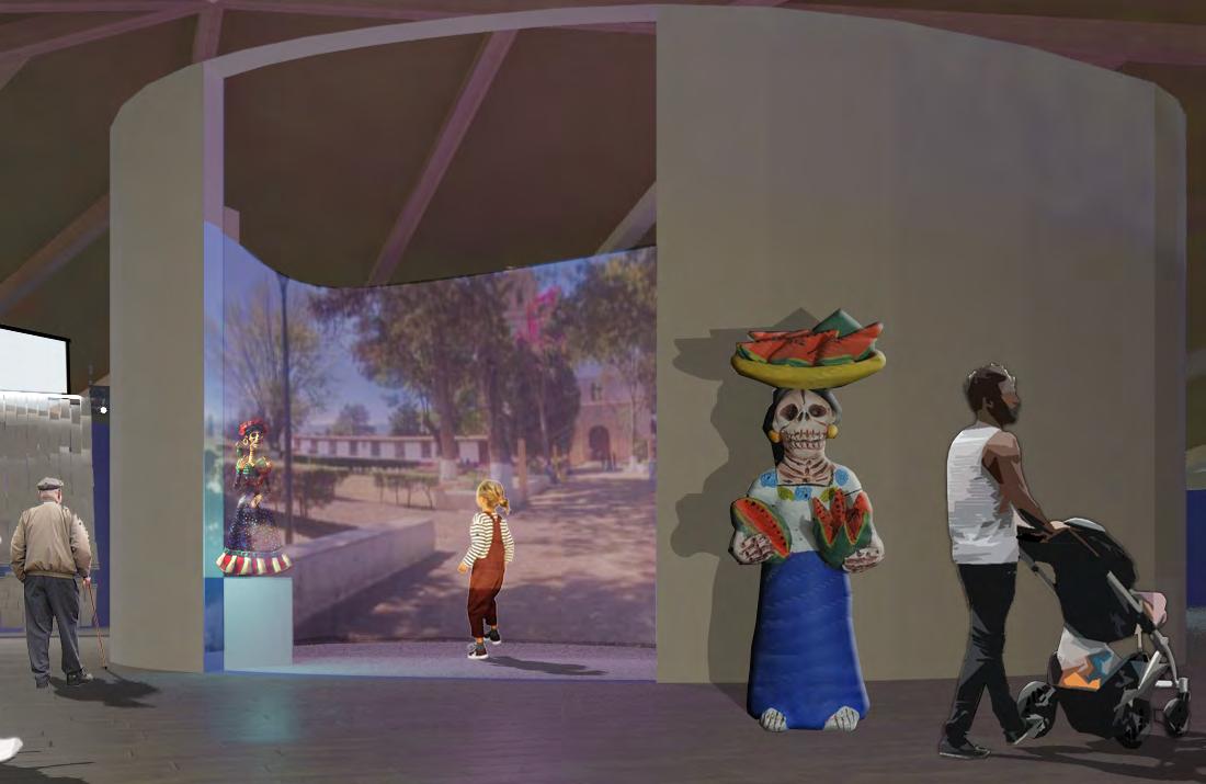 Modelo de ciudad Utopica “Kurhpikuaeri” que representa un cambio de paradigma, en el que el ser humano supera la idea de percibirse a si mismo como el centro de todo. Se trata de una idea basada del pasado utopico de Vasco de Quiroga.