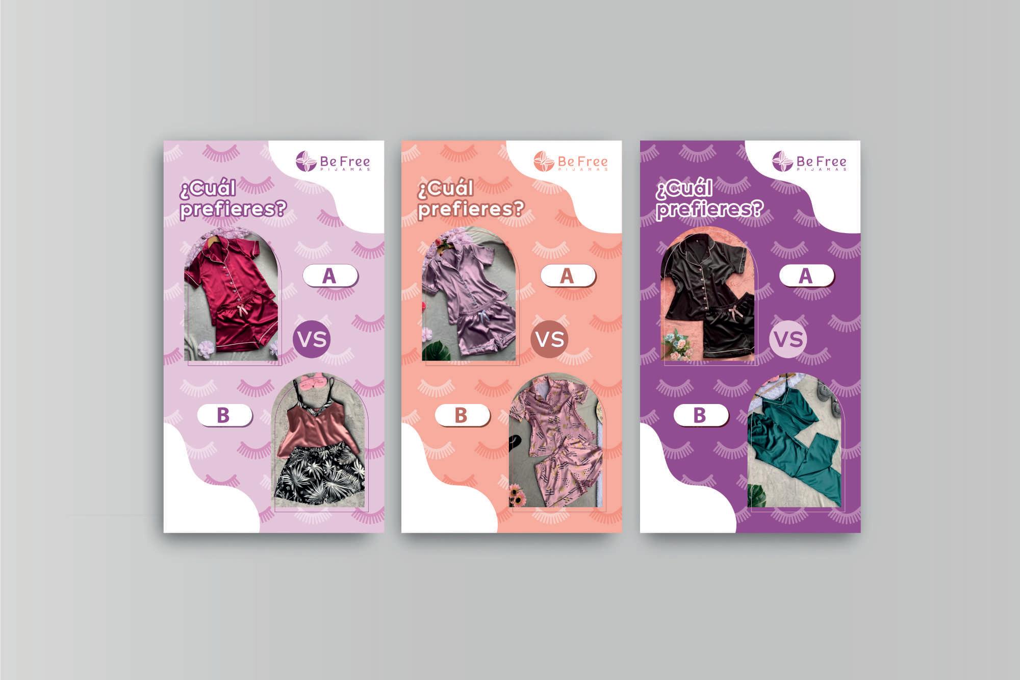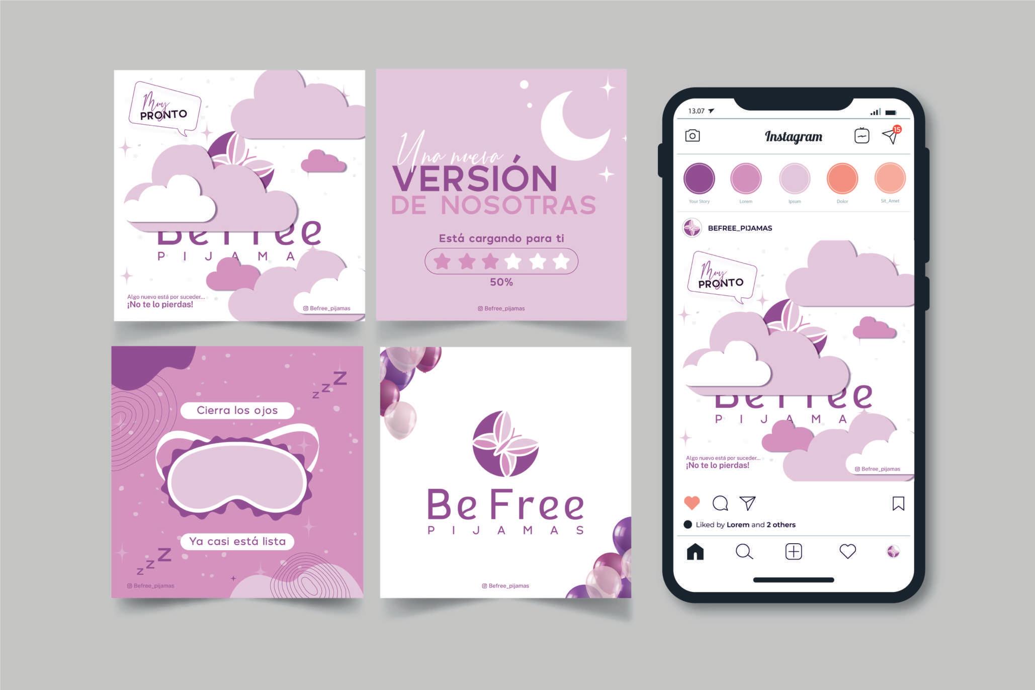 3. Copy: Pijamas hace acompañamiento a la razón social de la marca, especificando los productos que ofrece Be Free.