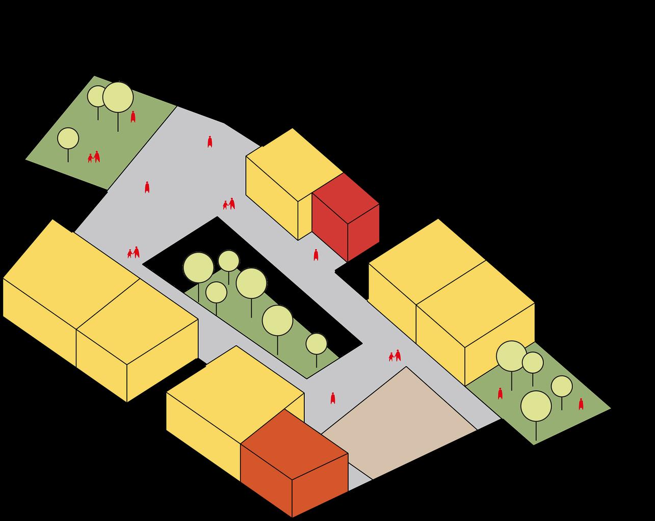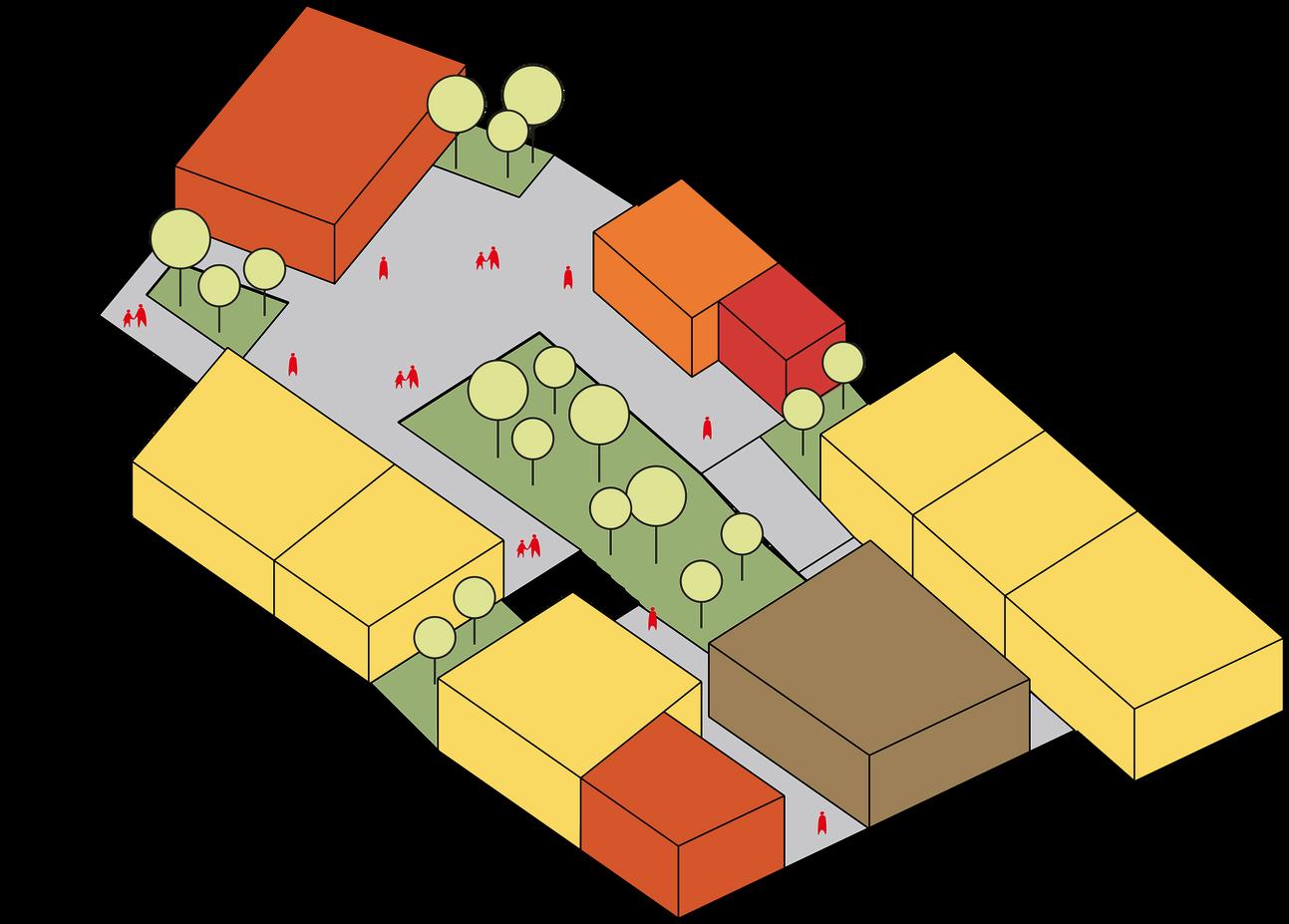 Elproyectobuscaunificarelespacioprivadoysocialpormediodela interseccióndedosmóduloselcualseunepordiferentesplazasverdes,conel findegenerarunambienteamigableconelentornoylanaturaleza.Todoesto atravésdelconceptobiofilia,elcualseveincluidotantoenelexteriorcomo enelinteriordelaviviendavertical,elprincipalfocoverdeseencuentranen lasdiferentesáreasempezandoconplazas,luegolosjardinesverdesyenlas fachadasdondesepondránjardinesverticales.