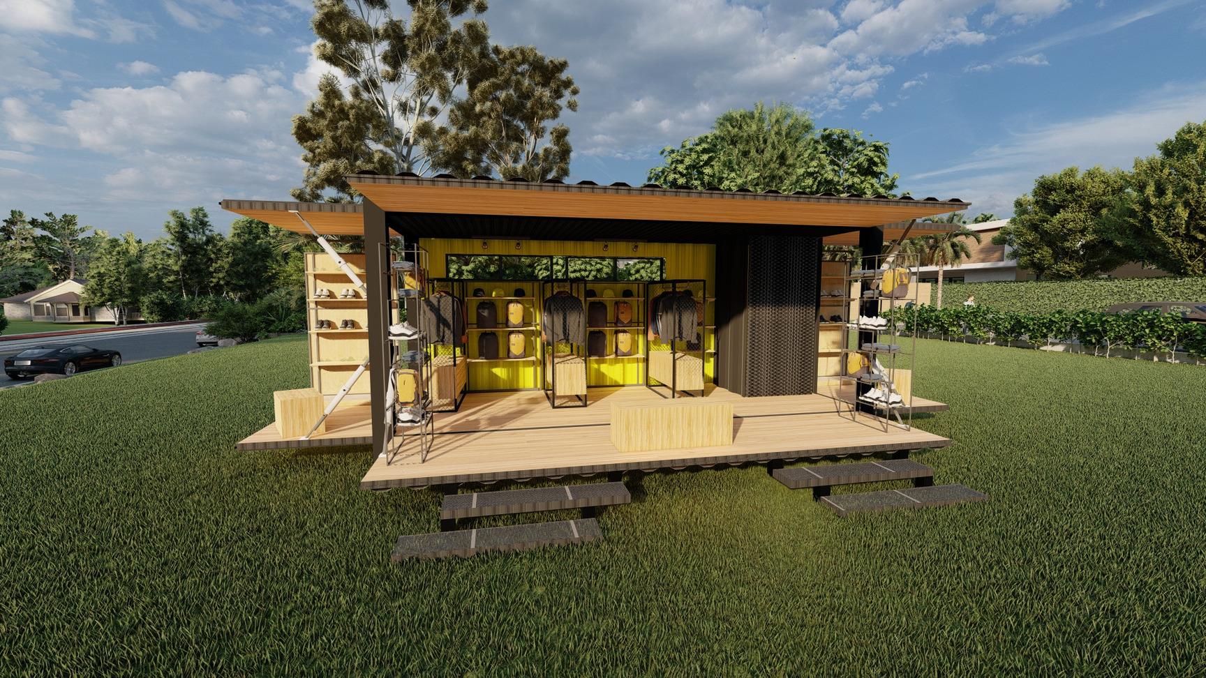VolumenMaximizado s ción Por medio de un container poder realizar una tienda portátil. De forma que esta pueda ser capaz de trasladarse sin ningún problema y que cuente con las cualidades necesarias que una tienda puede ofrecer. TIENDACONTAINER Áreadeventa Vestidor Deck CONEXIÓN FLEXIBILIDAD AMPLITUD PVCImitaciónMadera Playwood BrazoHidraulico LanadeVidrio Playwood BaffleNegro PanelSandwich Vigademarco inferior Vigademarcosuperior PVCImitaciónMadera Columna PVCImitaciónMadera E S T R U C T U R A