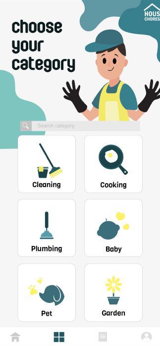 Created an application view for an application called "Hous Chores", a home cleaning service provider application. Ai