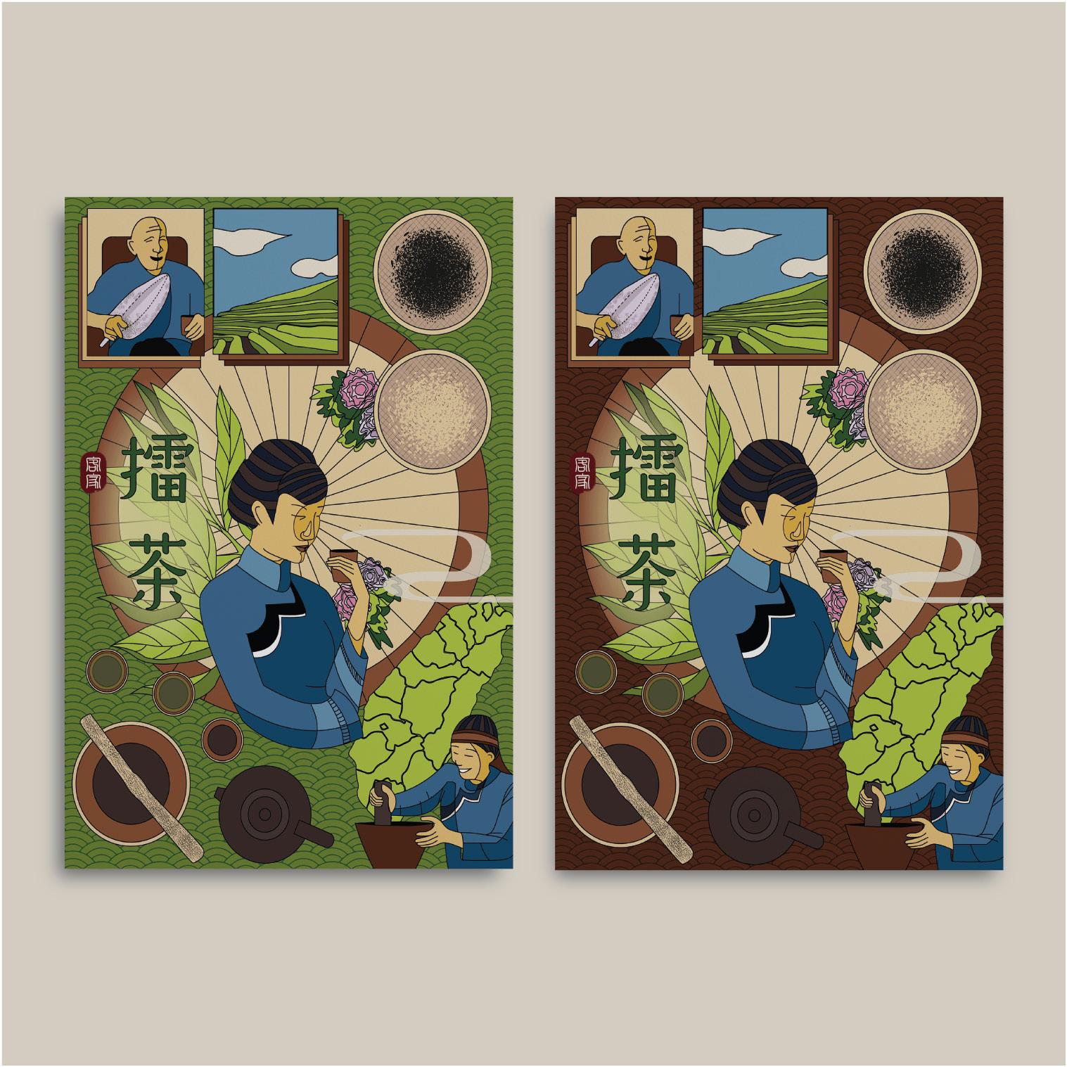 This is a self-practice project that illustrates Taiwan’s Hakka tea culture with related colors, made with Adobe Illustrator.