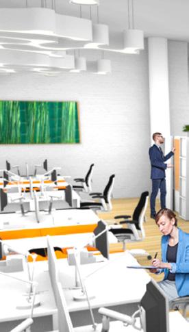 Stantecs design mission is to design with the community in mind. I was inspired by their mission, to me the word community also means family. So I wanted to create a space that is open with clean lines and pops of bold color. Materials will be light and simple to highlight the branding of orange throughout the space. The office will be somewhere employees can not only work but also live and play.