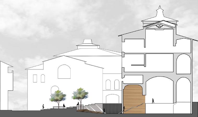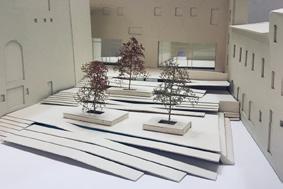 The purpose of my design “The Circuit”, is to create an outdoor gathering space, that doubles as a transition from the museum to ground level. Visitors can travel through time as they move through the modern additions, to the historical art pieces inside the galleries, then visit the ancient Roman ruins below the earth. By reusing some of Uffizi’s unique materials these new and modern additions should blend well with the original building even though it was built over 400 years ago. This design connects the exit level of the Uffizi Museum to the ground level of the Piazza del Grano through a system of ramps and stairs. In result a public gathering space is created, creating a new recognizable space to tourists, and finally gives the Uffizi Museum an exit it deserves that is just as memorable as the entrance.