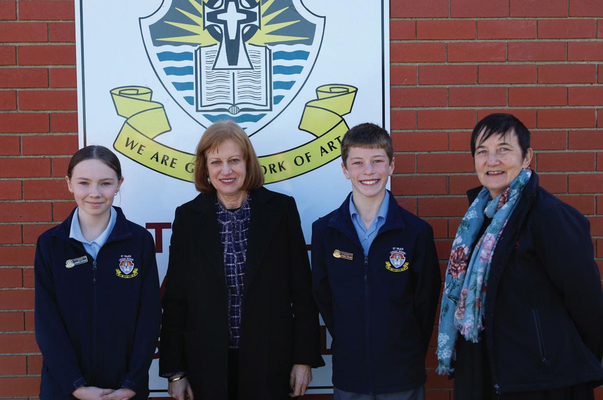 St Paul’s Catholic School recently welcomed Her Excel lency, Governor of Tasmania, Barbara Baker AC and her