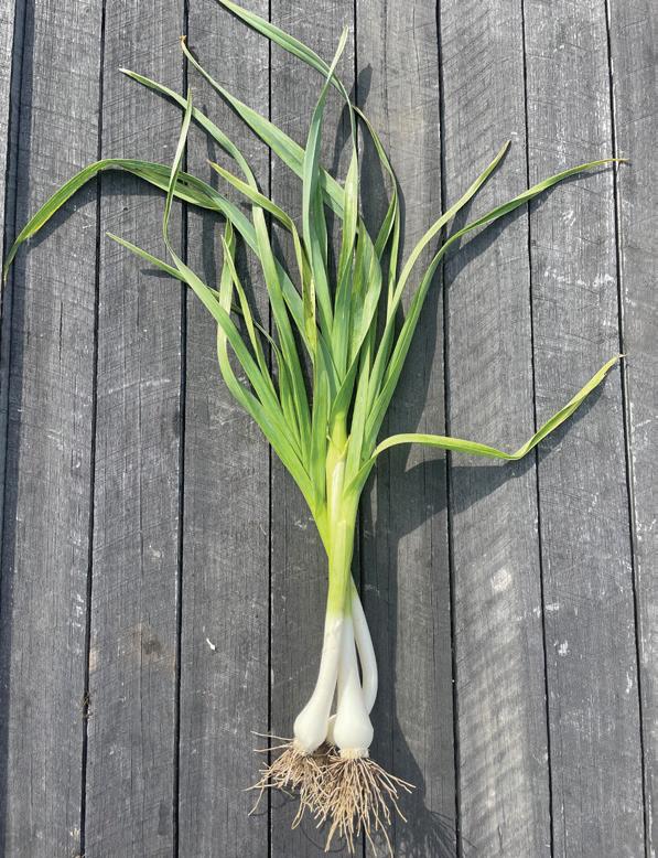 An added benefit to growing elephant garlic is its perennial nature. Last year, after harvesting, Phil and Jimmy left the roots of the plant in the ground, and they also allowed nodules that grew off the stem to fall on the ground. Over winter a crop of carrots was then sown in the same bed, and now in between the carrots Jimmy and Phil have another crop of the elephant garlic.