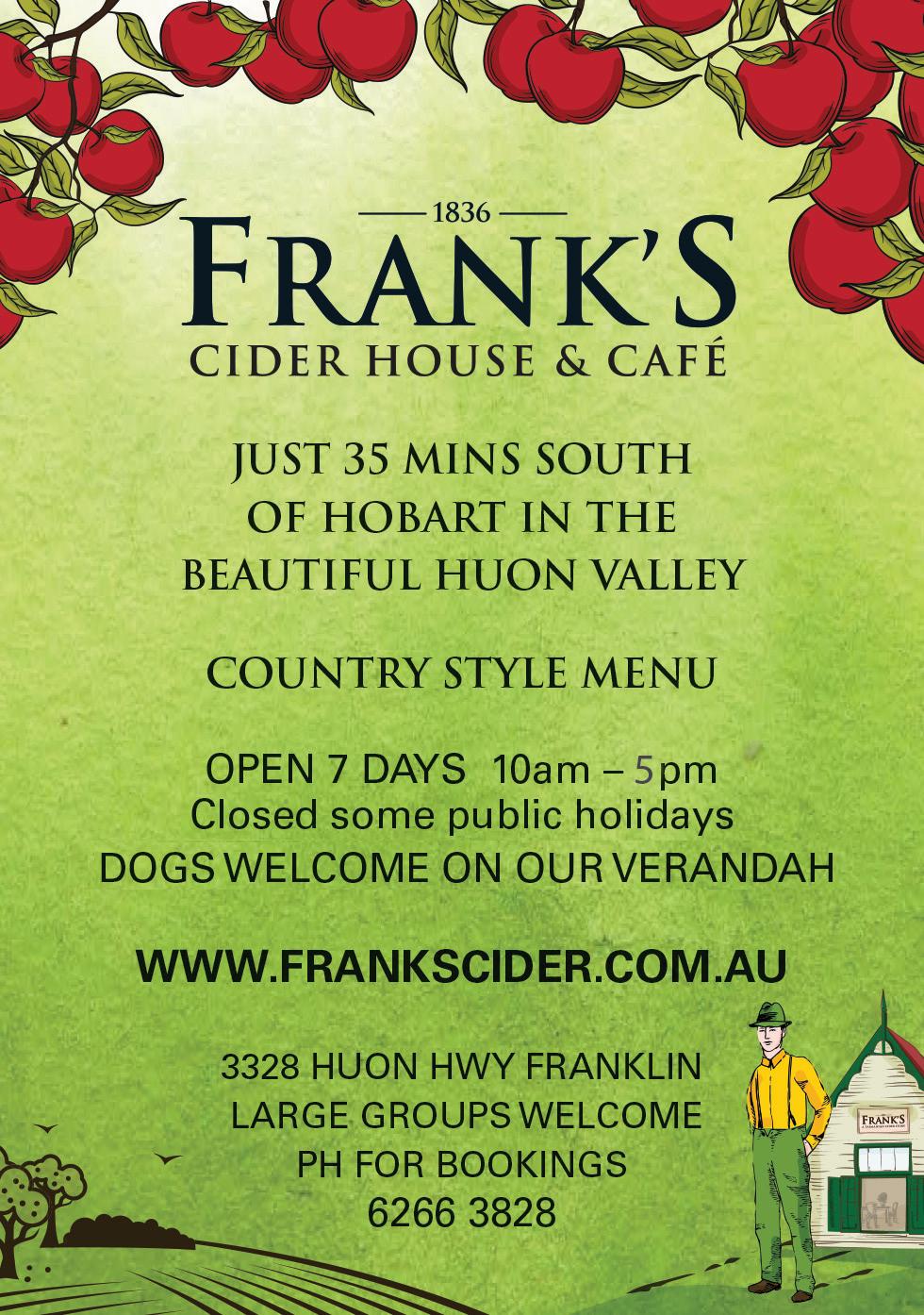 45 Visit the Airwalk, experience the Eagle Hang Glider or book the Twin River Rafting adventure. The Huon Pine Walk is now open and is pram and wheelchair friendly! Open 7 days & Pet friendly! Your local Liberal Member for Clark Phone: 6165 7730 elise.archer@dpac.tas.gov.au The An event space for all occasions Complex www.simplecider.com.au emilly@simplecider.com.au For further information: