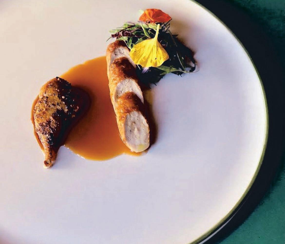 Executed as described, less fine and more fun dining, the first few courses are smaller snack size pieces arriving on an array of tableware. A morsel of soy glazed kingfish, a two-bite sized piece of arancino (singular arancini) where puffed crispy rice acted as a shell to a gooey cheese filling and a pork belly piadina - an Italian style rye flat bread. A pouring of Made by Monks Gewurztraminer is an eclectic, orangey and welcoming start. After a delicate bowl of scallop gnocchetti, coiled ribbons of saffron pappardelle resemble the grooves of a snail-shell, topped with a diced mussel and horseradish sauce. A snowy white Tongola goat’s curd risotto follows with a blazing dusting