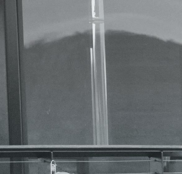 As you drive around it, the fountain gives the impression of a UFO having landed, thanks to its bowl shape, jet-fin pillars,