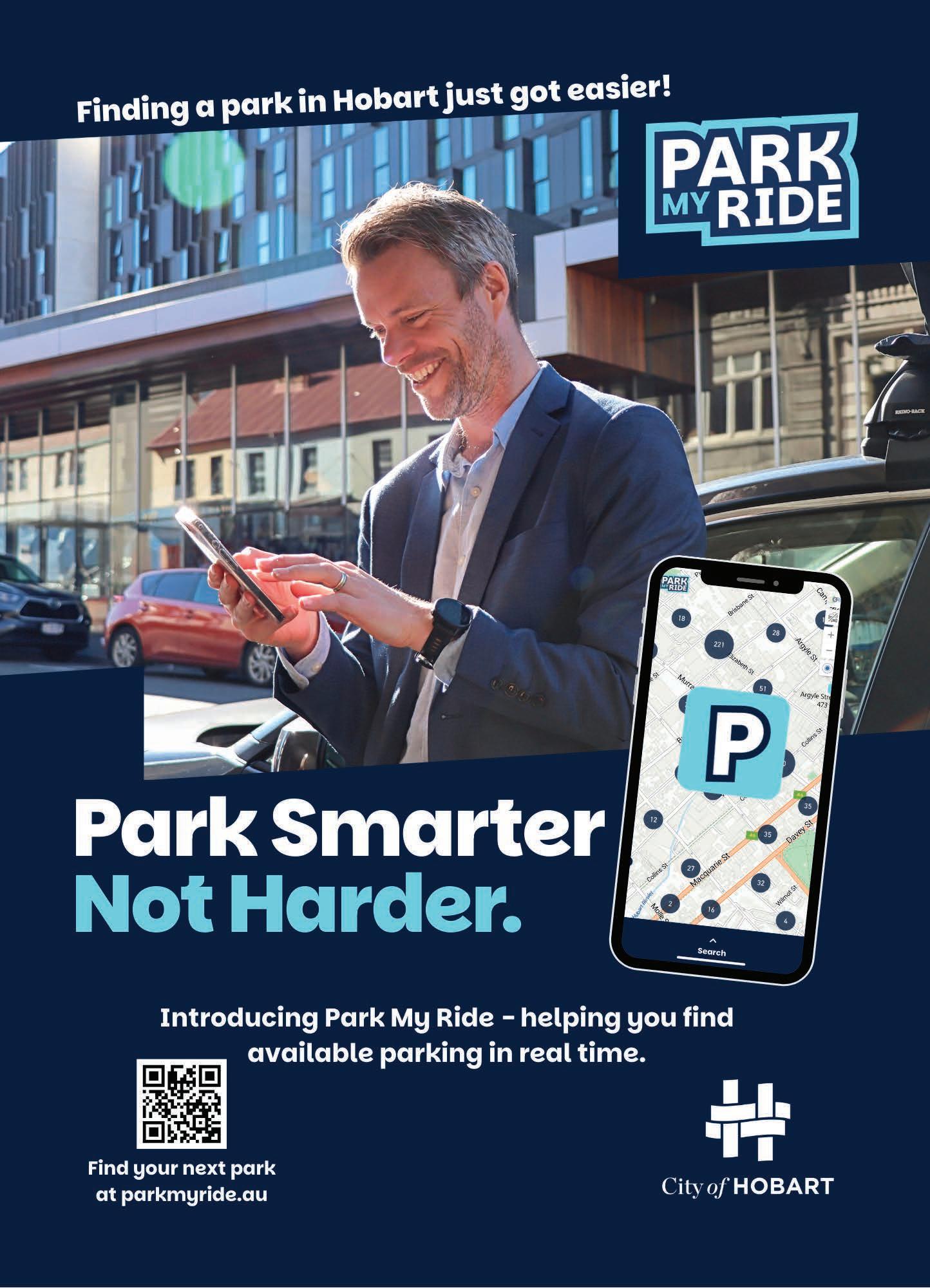 Ever been stressed out trying to find a car park in Hobart? Many have. Hopefully, worrying whether you’ll get a park or not in the city will be a thing of the past thanks to a brand new live parking map showing real-time availability across the city. Park My Ride shows availability across nearly 2,000 on-street parks and multi-storey car parks. It updates every 15 seconds, and includes over 40 accessible bays. It also shows how long you stay in each park. Access it at www.parkmyride. au. Remember to not use your phone while driving - plan ahead or ask a passenger to check.