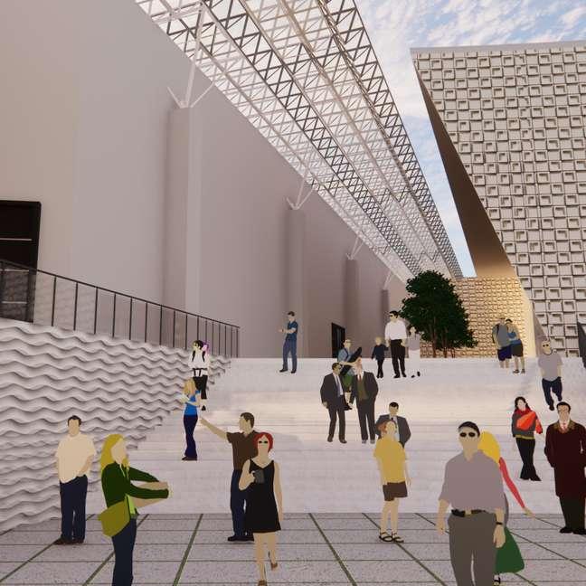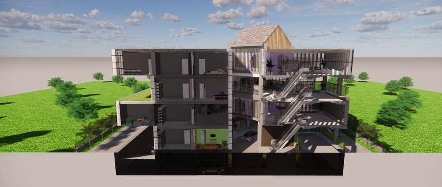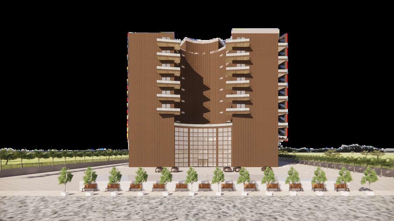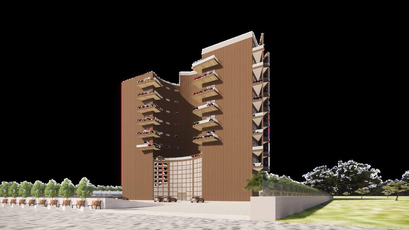 The mass of Building 1 with 10 floors is a semi-circular dag roof which will later be used for solar panels, reservoirs, shafts. The mass of the building is 2 with 5 floors. It has a 3/4 circle shape using a dag roof which will later be used for a swimming pool, cafe, lounge.