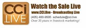 View the sale from your phone, tablet, or desktop computer and bid with confidence! Visit www.CCI.live for complete sale information and online registration. 405.400.9505