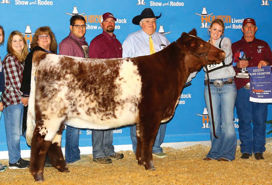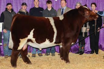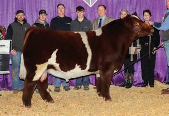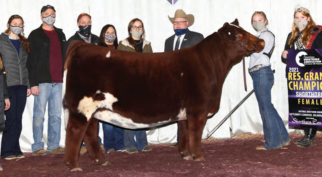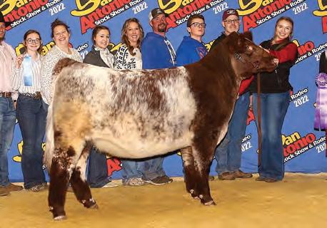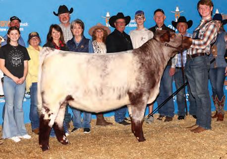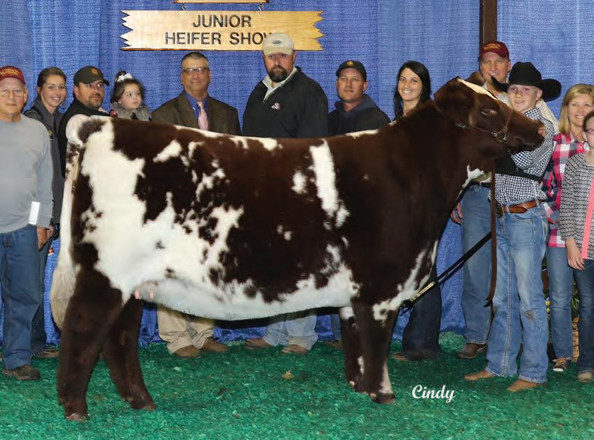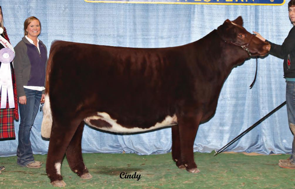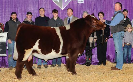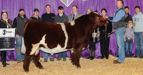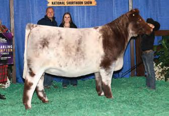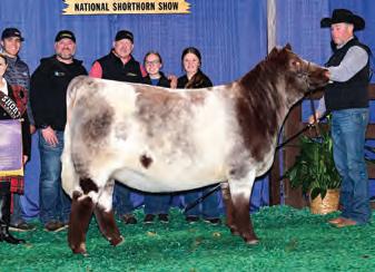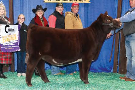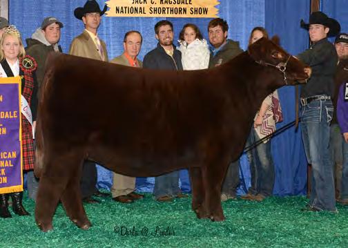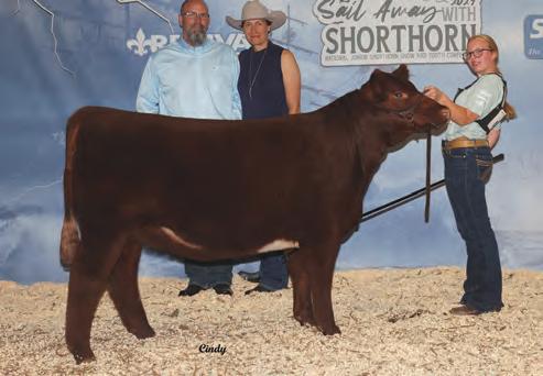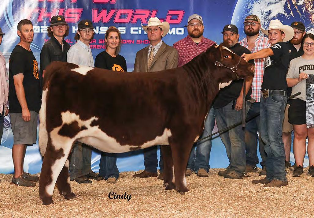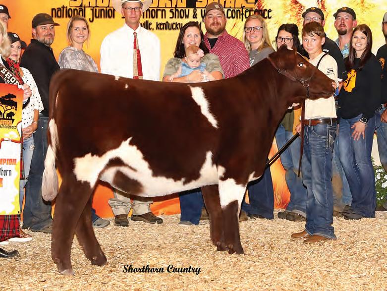In 2019, upon my retirement as a United Airlines Captain, we expanded our Angus cattle business of many years into the Shorthorn breed. I approached Steve about buying a show heifer/donor prospect. He quickly answered, “The Margie 1914 heifer calf is the most elite female in the sale and you should seriously consider buying her.” When I saw her, I agreed, right to the last bid of $23,000. Two years later, her first natural calf, Margie 2124, sold to Tadmore Farms for $46,000! 2124 is pictured winning NAILE Early Spring Calf Champion and Fort Worth Reserve Grand Champion. She and 2378, her half sister by Lookout pictured on page 9, are proof of the leadership 1914 will provide to a breeding program with “above all” aspirations!