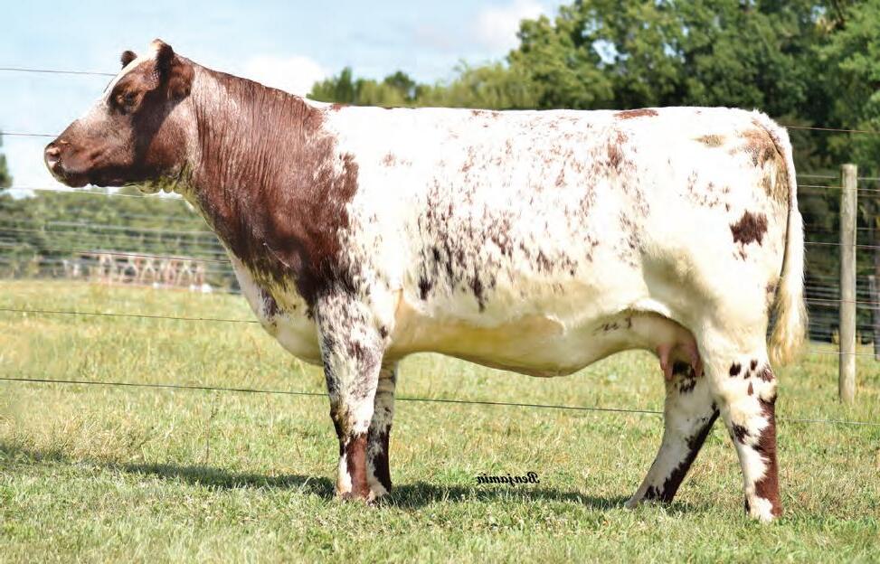 This former show heifer is an even more impressive cow. She is the mother of Direct Deposit, 2024 Cattlemen’s Congress Grand Champion. Her first daughter, sired by Flash, was Reserve Grand Champion Bred & Owned Heifer at the 2023 NJSS, followed by Reserve Grand Champion of the 2024 EDGE Show at OKC.