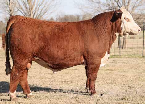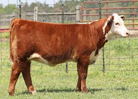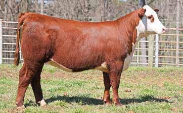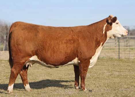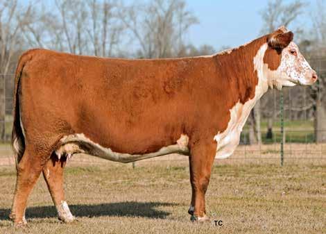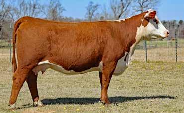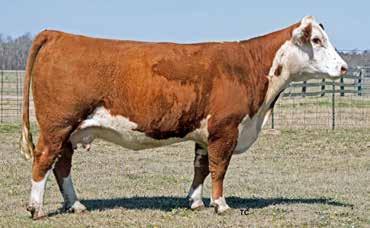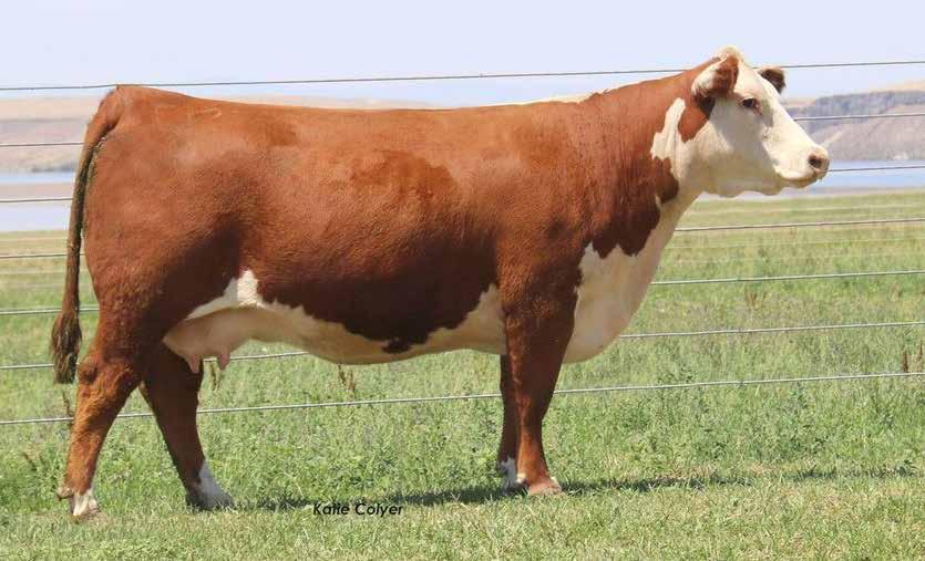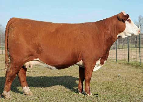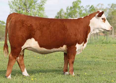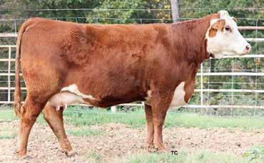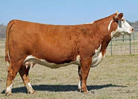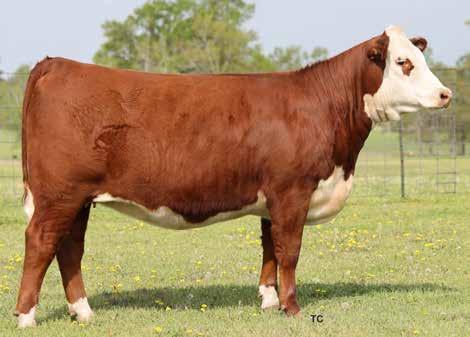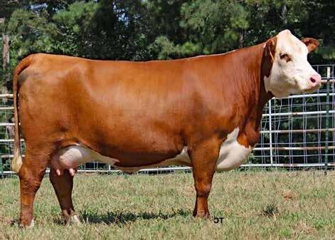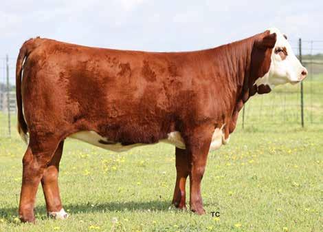 • Study her EPD profile and see she has 10 EPD traits in the top 20% or better of the breed including WW, YW, SC, SCF, MG, Udder, Teat, CW, REA, IMG plus all three $ indexes are in the top 5% or better BMI, BII and CHB.