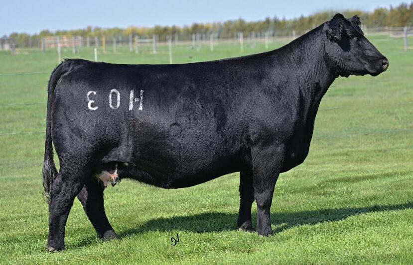 H34 comes from one of Dave’s favorite cows and it shows, as her daughters have been kept back instead of sold. This is her second mating to Maternal Made, and once again the result is impressive. From birth, H34 has been a standout, combining stoutness, eye appeal, and structural correctness. He’s built the right way, with power, balance, and presence. A full brother sold in last year’s bull sale.
