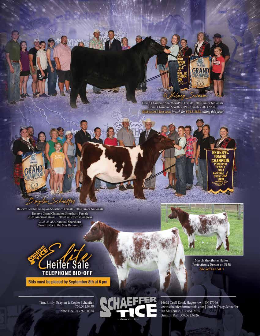 Sept. 8 - Schaeffer Tice “Elite Heifer Sale” Telephone Bid-Off, Hagerstown, Ind.