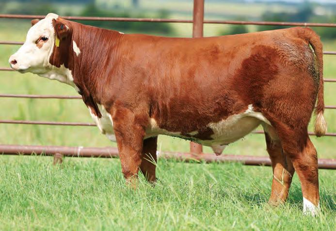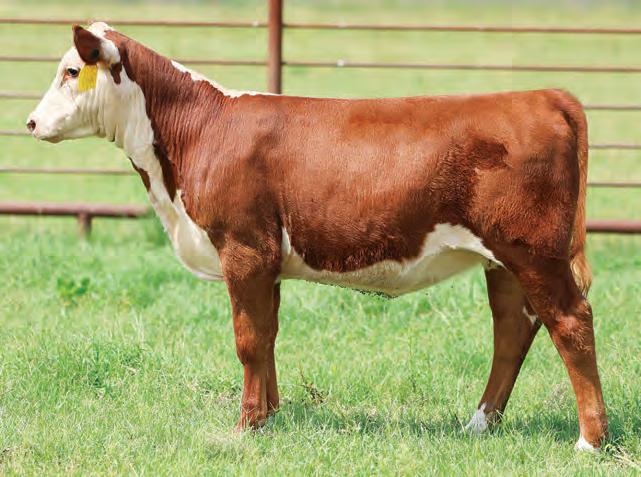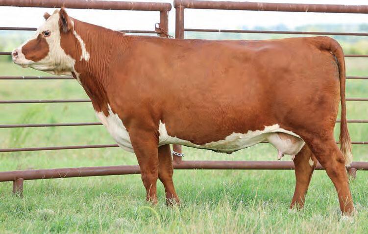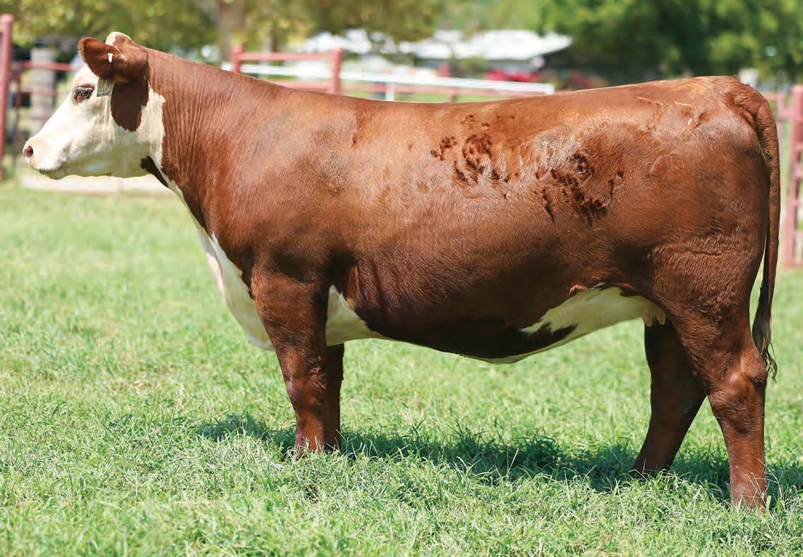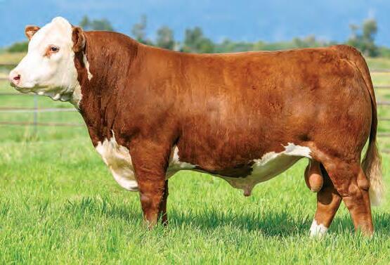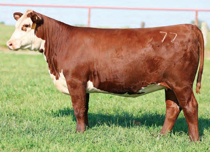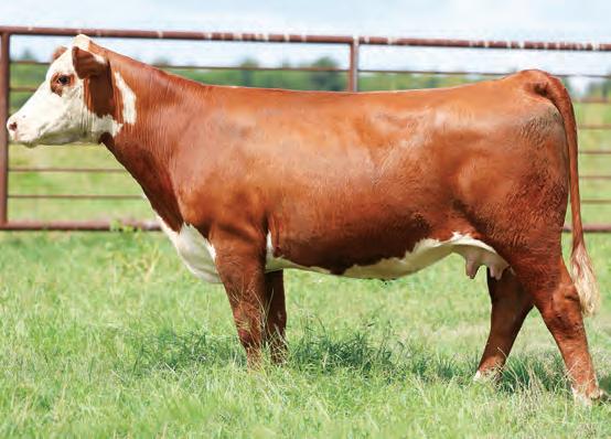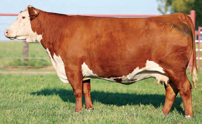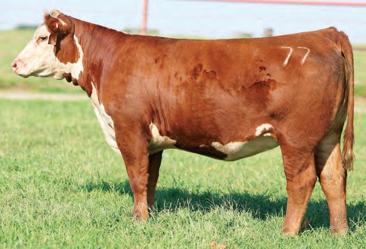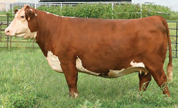 This iconic donor sold as Lot 3 in the Inaugural Big League Genetics Sale in 2019, commanding $62,500 for half interest for a $125,000 valuation to Churchill Cattle Co. in Montana. 7098, affectionately named “Super Cow” by Dale Venhuizen, is now a household name in the Hereford breed. Unfortunately, she passed away soon before she was set to sell as the featured Lot 2 in the recent historic Churchill Dispersal. This made her progeny highly sought after in that World Class dispersal, as her sons and daughters totaled $1,254,700 to push her total progeny sales over $3 million. Furthermore, the progeny of her daughters and granddaughters totaled another $1,031,600, pushing the sales from the cow family in the twoday event to an anostishing $2,286,300. 7098 has produced herd bulls and donors that are working in programs across North America. In this offering, two direct daughters sell as Lots 30 and 31 along with progeny sired by her sons.