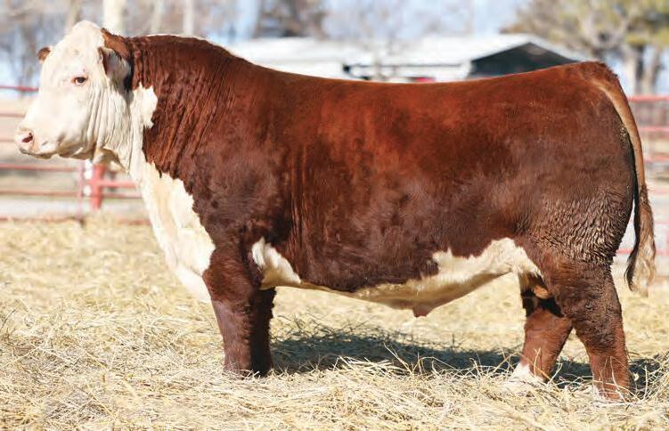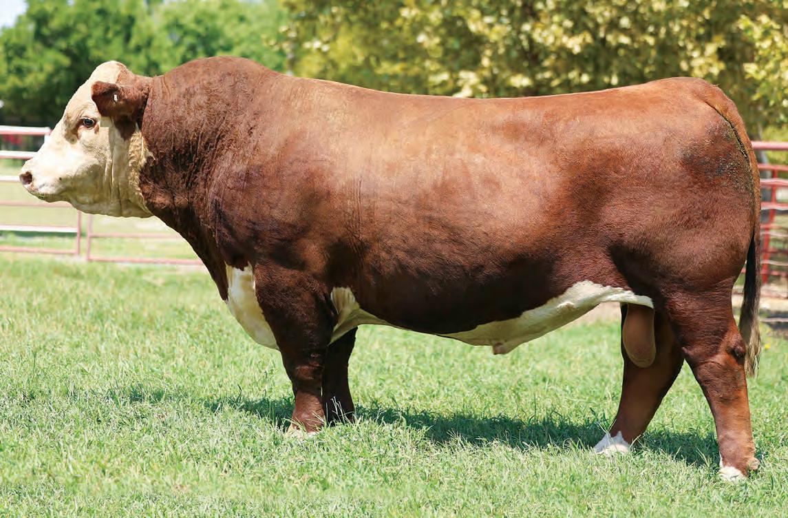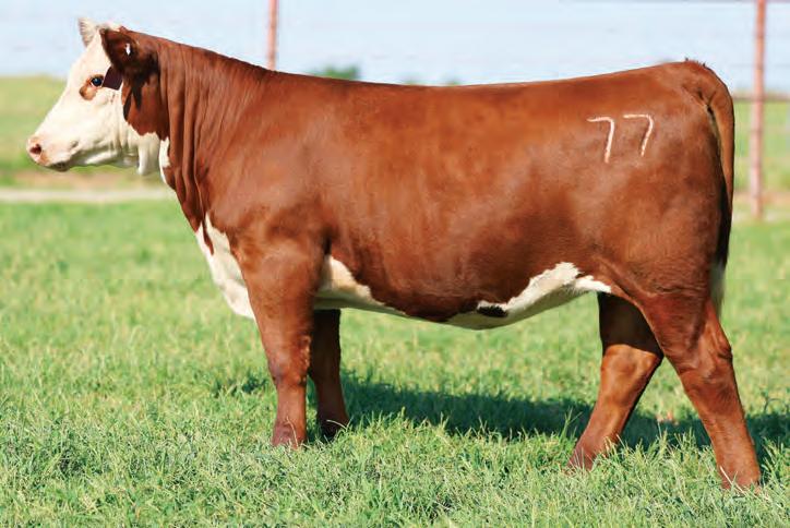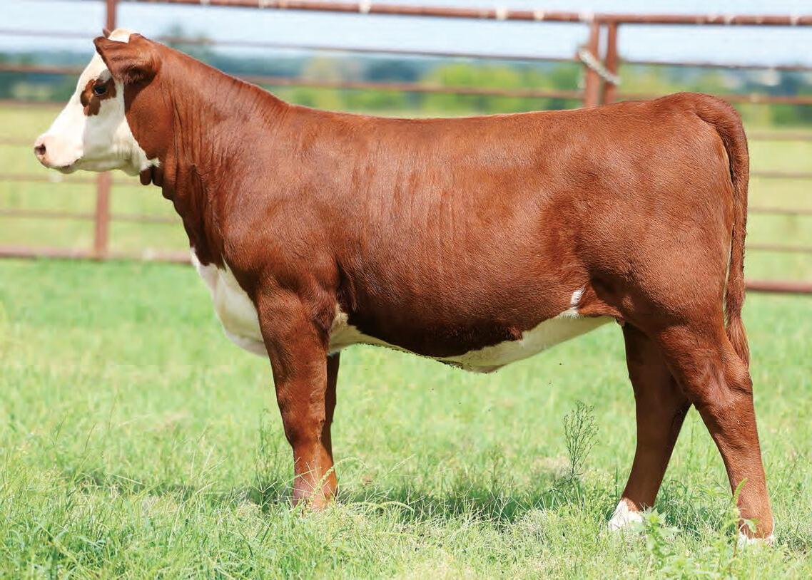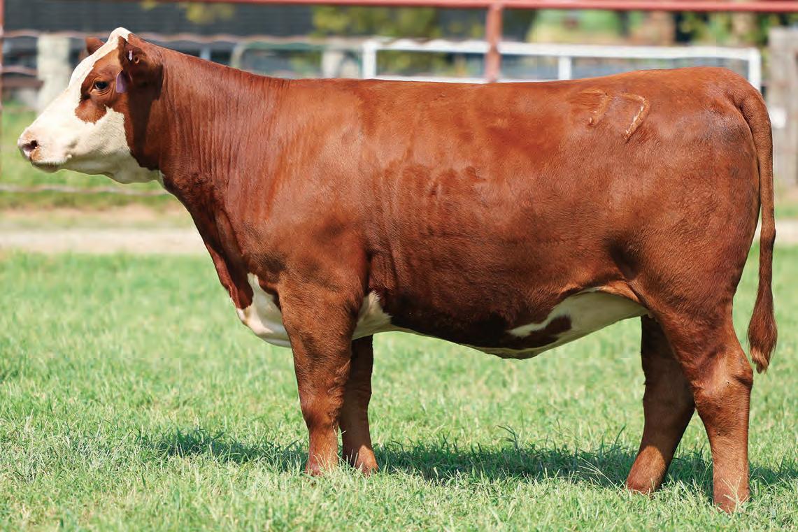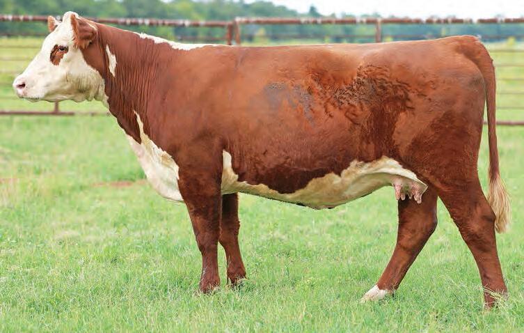 This iconic donor sold as Lot 3 in the Inaugural Big League Genetics Sale in 2019, commanding $62,500 for half interest for a $125,000 valuation to Churchill Cattle Co. in Montana. 7098, affectionately named “Super Cow” by Dale Venhuizen, is now a household name in the Hereford breed. Unfortunately, she passed away soon before she was set to sell as the featured Lot 2 in the recent historic Churchill Dispersal. This made her progeny highly sought after in that World Class dispersal, as her sons and daughters totaled $1,254,700 to push her total progeny sales over $3 million. Furthermore, the progeny of her daughters and granddaughters totaled another $1,031,600, pushing the sales from the cow family in the twoday event to an anostishing $2,286,300. 7098 has produced herd bulls and donors that are working in programs across North America. In this offering, two direct daughters sell as Lots 30 and 31 along with progeny sired by her sons.