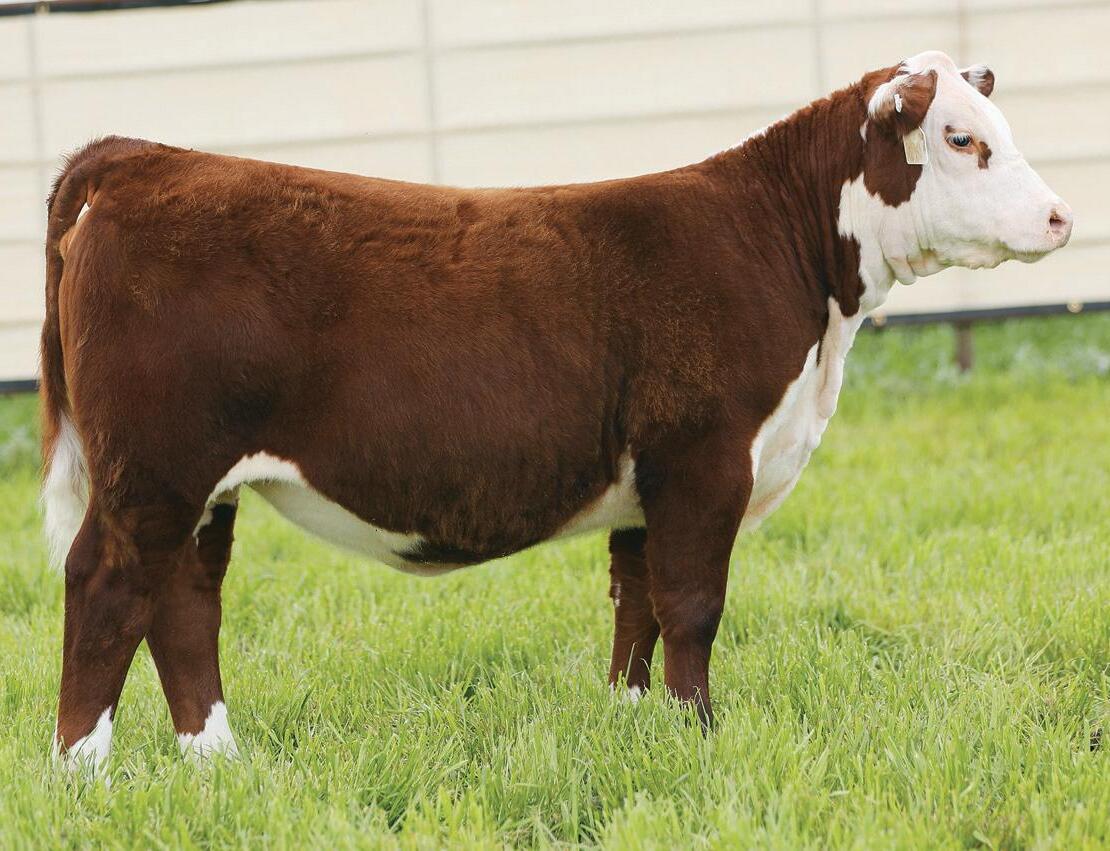 Beautiful F1 Black Hereford sired by Iconic that ranks in the top 1% of the breed for WW, YW, TM, CW, Marb, API and TI. This first-calf heifer is made correct from the ground up and has a beautiful udder. Young females like 3257 are what have made the Black Hereford breed so popular. This young female represents an incredible investment opportunity for the most progressive Black Hereford breeders.