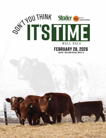 =Advertising Representatives Montie Soules, ASA representative Don Cagwin, Durham Management Co. =Subscriptions US: 1 year- $24 • 2 years - $38 • 3 years - $52 1 year First Class - $54/year Canada: 1 year- $60 • 2 years - $110 • 3 years - $130 Other Foreign: 1 year- $120 • 2 years - $220 • 3 years - $300 SHORTHORN COUNTRY (ISSN 0149-9319) Published monthly by the American Shorthorn Association, 7607 NW Prairie View Rd., Platte Woods, MO 64151. Subscription rates are $24.00 for 1 year, $38.00 for 2 years, and $52.00 for 3 years in the U.S.; $60.00 for 1 year, $110.00 for 2 years, and $130.00 for 3 years to Canada and $120.00 for 1 year, $220.00 for 2 years, and $300.00 for 3 years to other foreign countries. Periodicals postage paid at Kansas City, MO and additional mailing offices. POSTMASTER: send address changes to SHORTHORN COUNTRY, 7607 NW Prairie View Rd., Platte Woods, MO 64151.