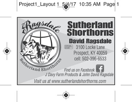 Inness Shorthorns 57 James F Bessler LLC 59 Jester Farms ................................... 57 Jungels Shorthorn Farm .. IFC, IBC, Jan. Kentucky National Shorthorn Sale 45 Kevin Wendt 59 Key Ridge Shorthorn Farm............ 57 Keystone Shorthorns