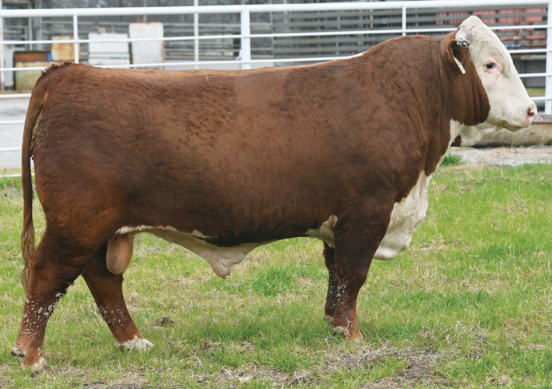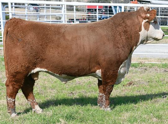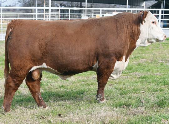 • The first Pinpoint 252K son offered at Doyle Hereford Ranch is a heavily constructed, long-spined individual with advanced testicular development in a shortmarked, red-eyed package and the look of a herd bull.