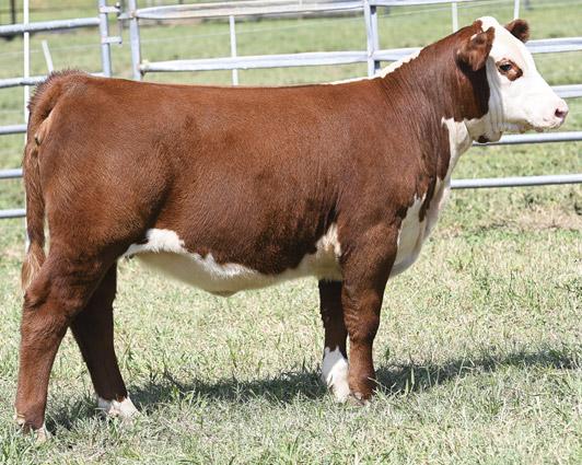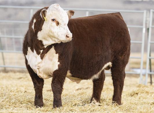 ▪ This natural daughter of J14 replicates her donor dam’s added power, body and look. Her sire, GR Entrust 3111, was produced in the Rausch Herefords program and is now owned by Dry Creek Farms and Upstream Ranch.