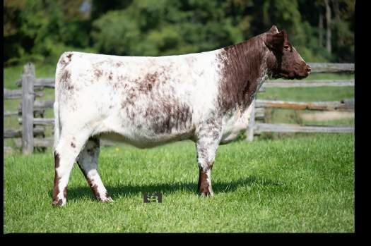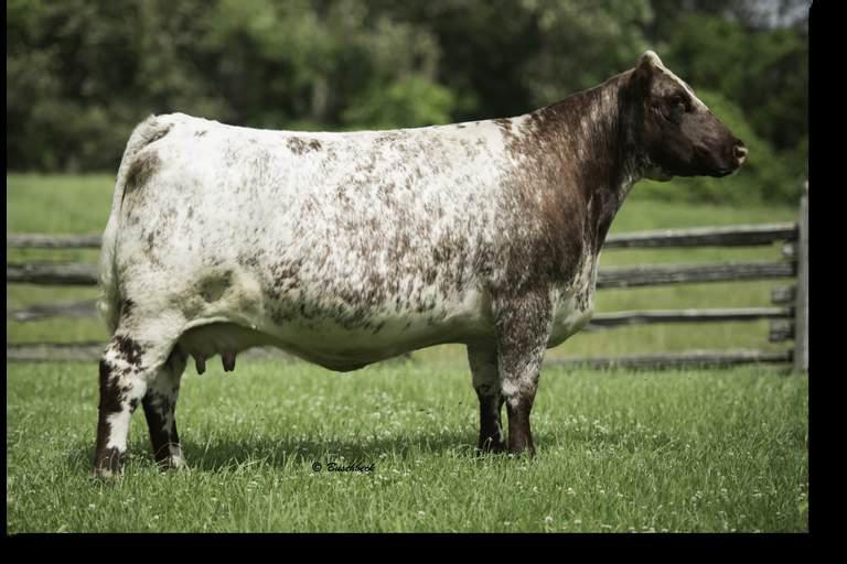 This is a special donor cow Flush opportunity. Breathtaken is co-owned with Sugarbird Shorthorns , KY and has been a standout in our respective programs. She is a big ribbed, deep sided female; classically Breathless family style with phenomenal maternal traits and she has an excellent production record. Numerous daughters have sold through our sales and Sugerbird’s sales and have gone on to prove themselves worthy of the family name.