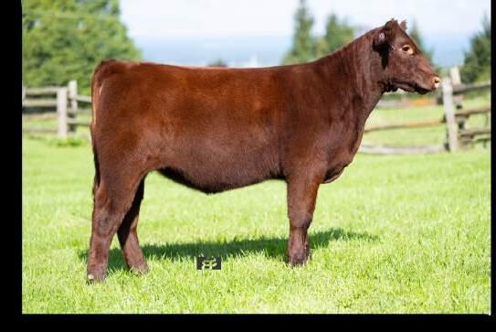 This soft made attractive female has the colour and eye appeal to draw your attention, but with it comes the power and bold construction that gives her that brood cow look. She is backed by two outstanding Donor Cows that have collected numerous accolades across the country. Daisy has been the dam to high sellers, and champions at The Royal, Agribition and Farmfair. As well as 422M’s sire and his dam being Agribition Champions and RBC Supreme Top 10 Finishers.