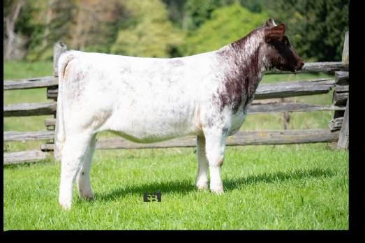 Hill Haven loves our WHR Cumberlands. Tess is a standout with a long extended front end, bold rib shape and it’s hard to take your eyes off her striking roan color pattern. Her dam has been a great donor female for us for several years and two of Tess’s maternal sisters topped previous sales. Dyan has that enviable “hey, look at me” pose and stunning profile that serves her well in the showring where she has been champion and reserve several times this summer. Dyan is registered Shorthorn Plus in Canada and purebred in the ASA registry. LOT 25 bred Apr.29 to Sexed Female Semen-JSF Ronan 5H; due to calve Feb.7,2025