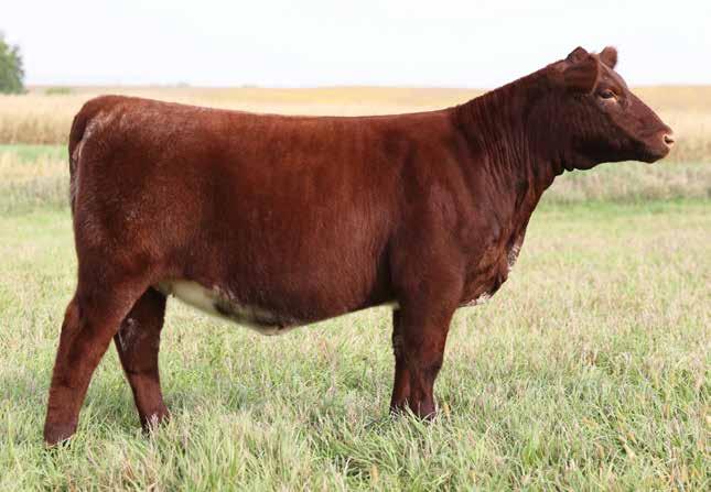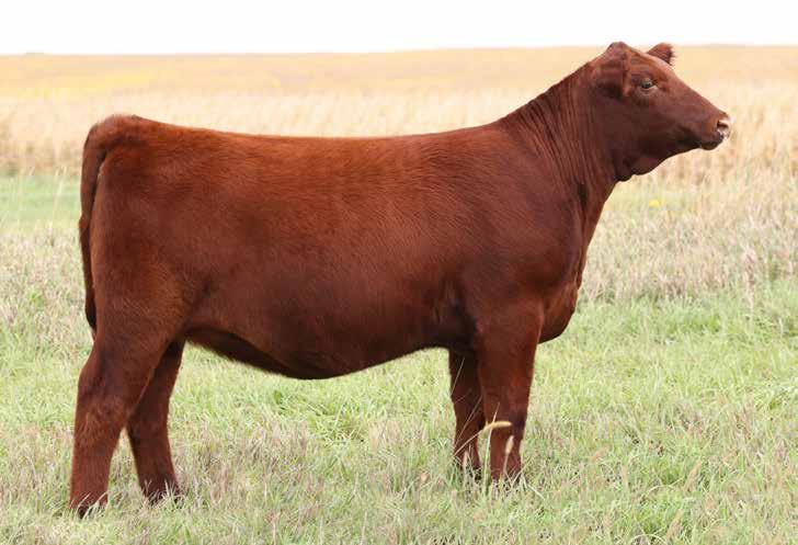 Big time solid red heifer with all the extras. A full sister sold this spring on our Spring Fever sale for $10K that we look to be ultra competitive this fall. Wild necked, big ribbed, and great set of running gear. The good ol Solution bull has made some great cows over the years, this one will be no exception.