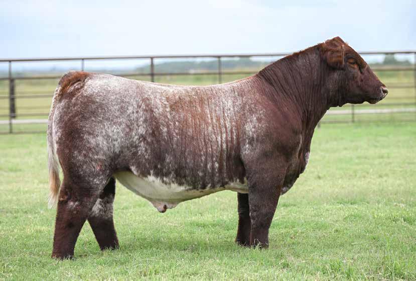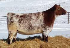 Fireball daughter! This good looking strawberry roan heifer has continued to pack it on and impress. Long bodied, squishy footed, and a show ring look. If you’re looking for a first timer heifer that can still make a great cow, this super quiet good haired 15 heifer is a great investment.