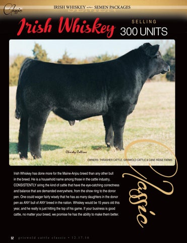 Irish Whiskey has done more for the Maine-Anjou breed than any other bull in the breed. He is a household name among those in the cattle industry, CONSISTENTLY siring the kind of cattle that have the eye-catching correctness and balance that are demanded everywhere, from the show ring to the donor pen. One could wager fairly wisely that he has as many daughters in the donor pen as ANY bull of ANY breed in the nation. Whiskey would be 15 years old this year, and he really is just hitting the top of his game. If your business is good cattle, no matter your breed, we promise he has the ability to make them better.