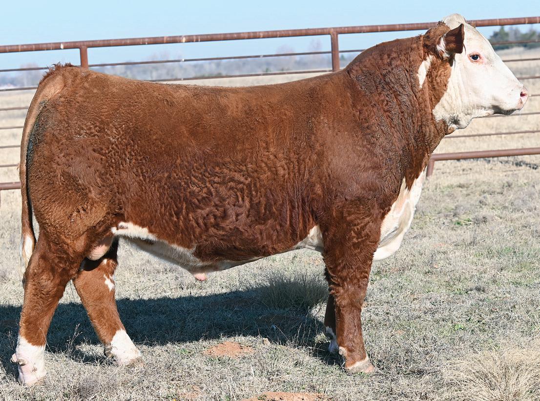 We would like to cordially invite you to join us for the 14th Annual Hereford Heritage Bull Sale. In this year’s sale, we have 95 Hereford bulls and 19 Angus bulls for your appraisal. In addition to the powerful set of bulls, we once again have a set of young commercial females. There are 13 commercial Angus first-calf heifers, most with calves at their side, and three threeyear-old black baldy spring-calving cows. The sale will once again be held at the Double Seven Ranch’s sale facility on their ranch located north of Fort Cobb, OK. As a group, we would like to extend a sincere thank you to the Willits family for hosting the sale again this year, as it is very time consuming and demanding to prepare for the sale.