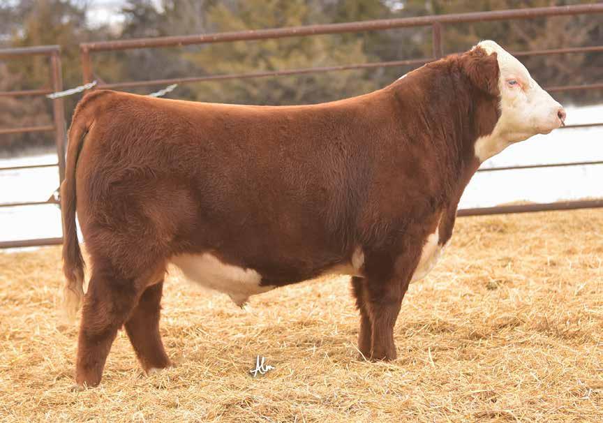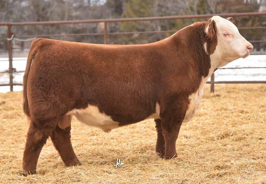 • An elite product of one of the most revolutionary flushes born at our Ranch. He is one of the widest topped, thickest rumped bulls we have ever seen. Plus, he is very good sheathed, clean made, and ultra-attractive.