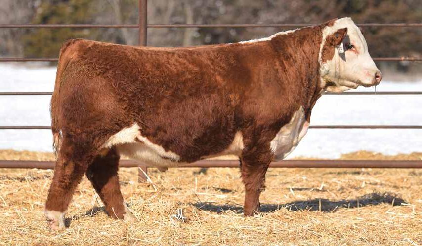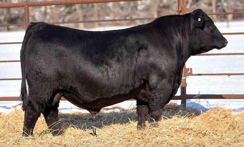 • Homozygous polled, full pigmentation, and equipped with a huge barrel rib shape with extra top dimension and width of base. Uniquely, he keeps CE and BW in check with breed leading growth and carcass EPD’s.