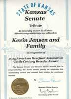 Kevin Jensen and family were recognized on the stage during the American Hereford Association annual meeting for registering Hereford Cattle for 50 years and awarded the Century Breeder award. In 1972, Kevin purchased his first Hereford heifer and it’s been the beginning of a lifetime of raising good Hereford cattle and living his dream. Kevin has had unwavering confidence in Hereford cattle that has supported the first generation of Jensen ranch and now the next as well. Kevin Jensen started with purchased of one Polled Hereford heifer purchased from RC Polled Herefords of Chester, Nebraska in the fall of 1972. Kevin was raised and still resides in Republic County, Kansas.