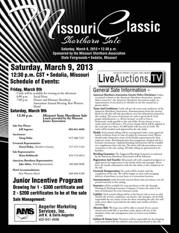 Saturday, March 9, 2013 ⢠12:30 p.m. Sponsered by the Missouri Shorthorn Association State Fairgrounds ⢠Sedalia, Missouri