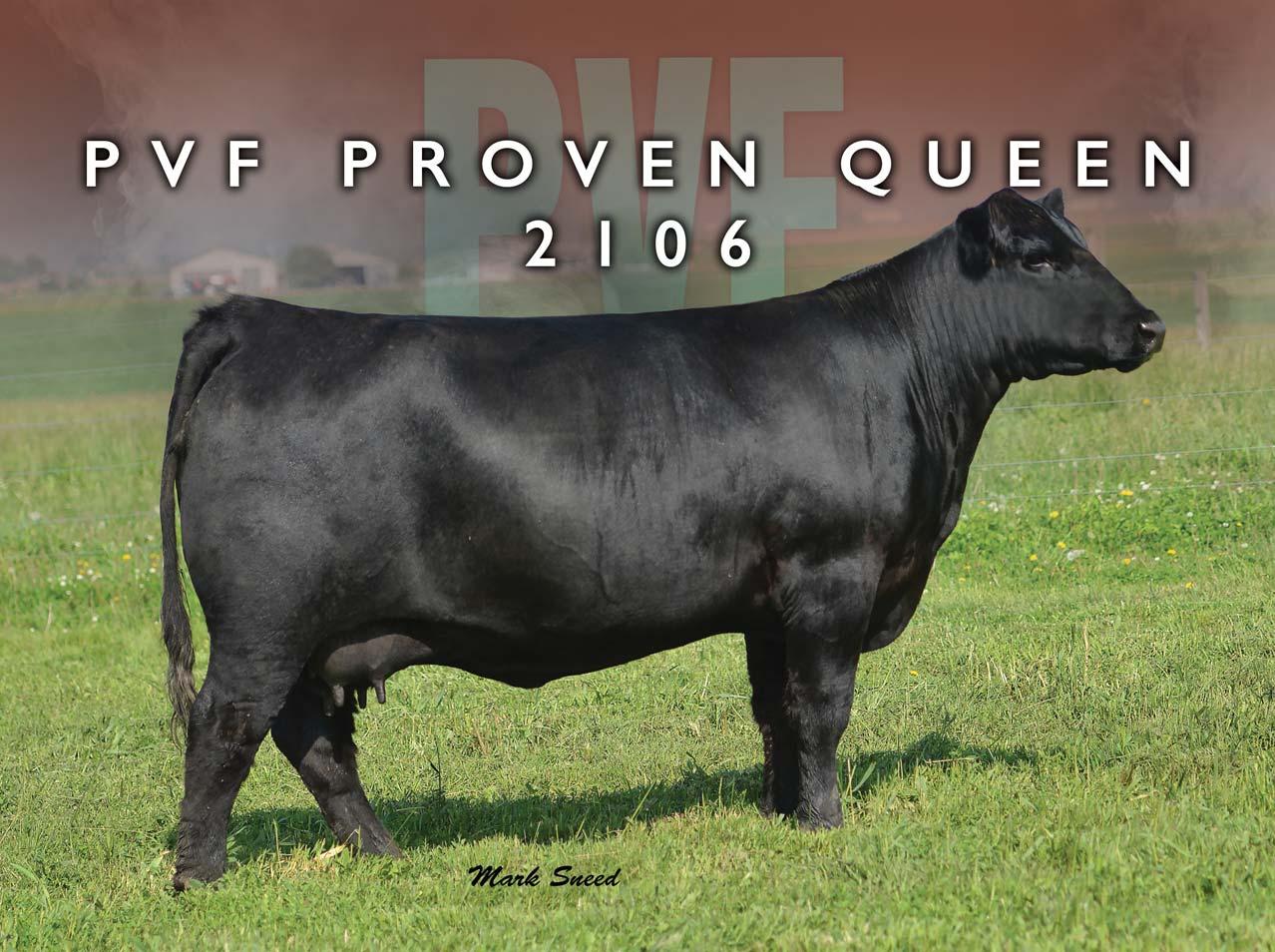 From the Proven Queen cow family, 2106 was chosen to be the foundation for Amelia’s bred and owned show string. 2106 consistently produces more power and stoutness of structure than virtually any female in our lineup. Her daughter, PVF Proven Queen 9119 was Grand Champion Bred and Owned Female at the 2020 Eastern Regional Angus Show, she produced the third overall female in the 2025 National Junior Angus Show and is featured as Lot 3 in this offering. Another daughter, PVF Proven Queen 2228, who is featured as Lot 9 in this offering, was named Grand Champion Bred and Owned Female at the 2023 National Junior Angus Show and will be a full sib to these Lot B embryos.