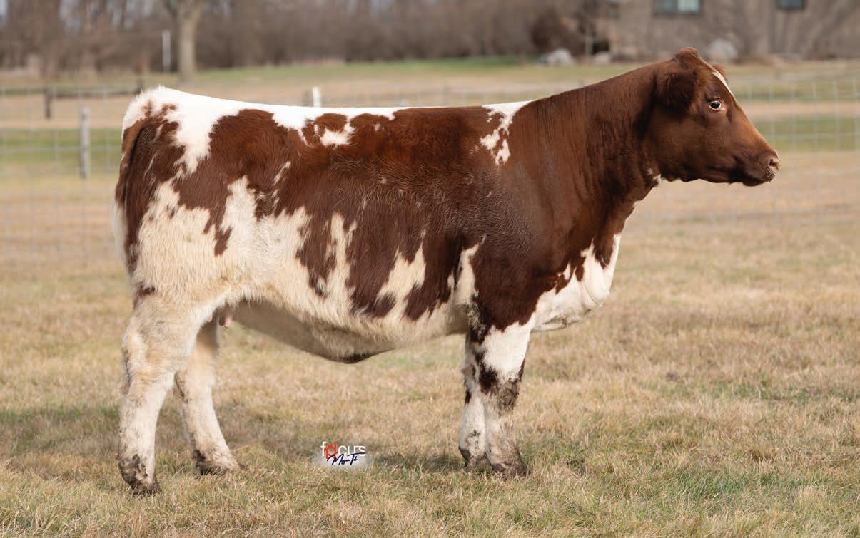 Another awesome dark red female that offers versatility to a breeding program. Extremely sound, and angular all while offering some power and muscle. Backed by the Chelsie cow family who derived from the Steck program, it is no stranger to show ring success and generating power. Her mother 501C was a many time champion for my brother Ben back in the day, highlighted by being named Reserve Supreme Female at NAILE. Being sired by SS Inferno offers a more outcrossed pedigree that can click with some of today’s hottest AI Sires. A maternal sister by Perfection sales for $17,000 in the 2024 Family Event.