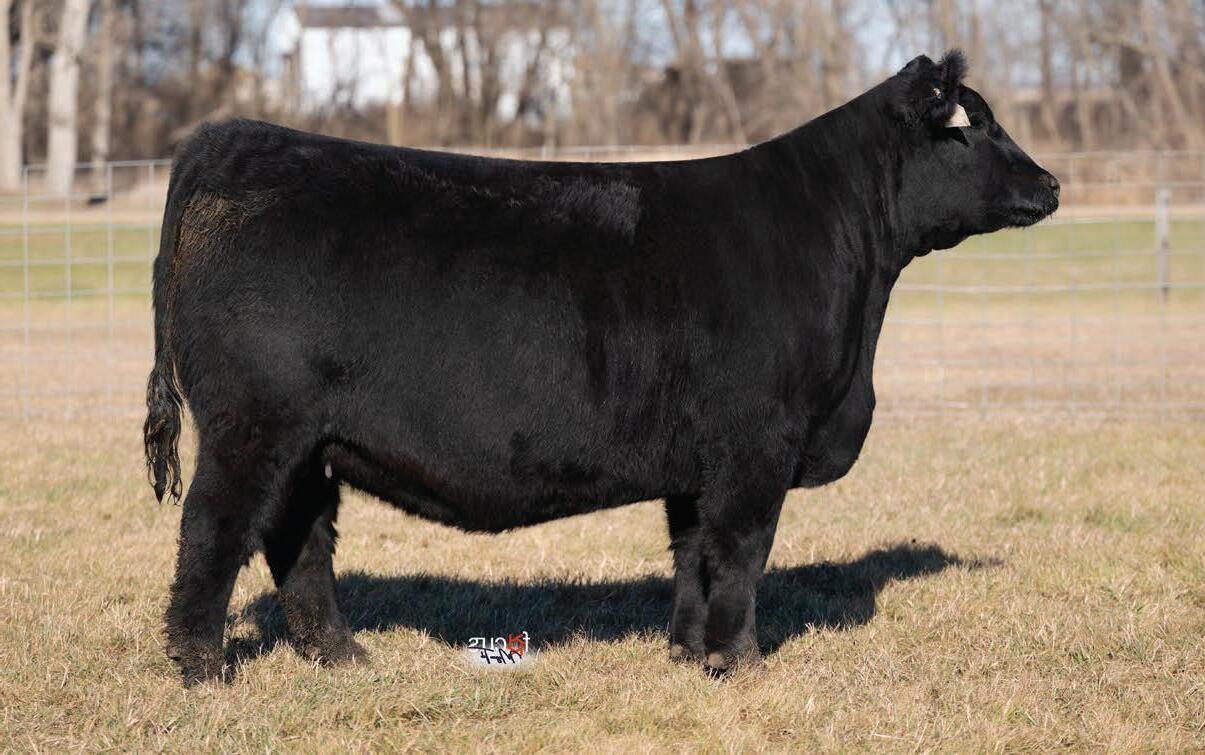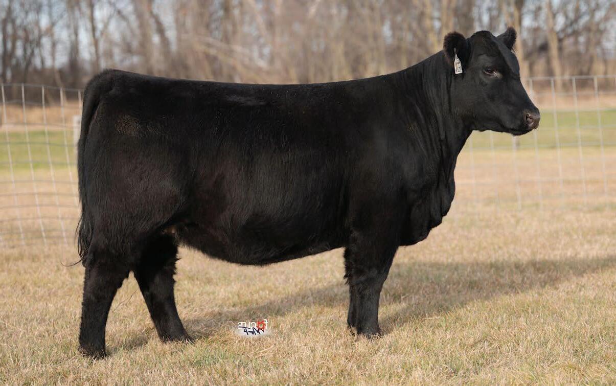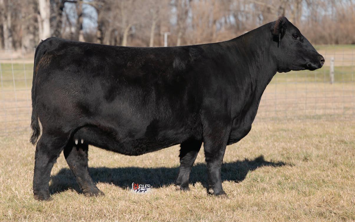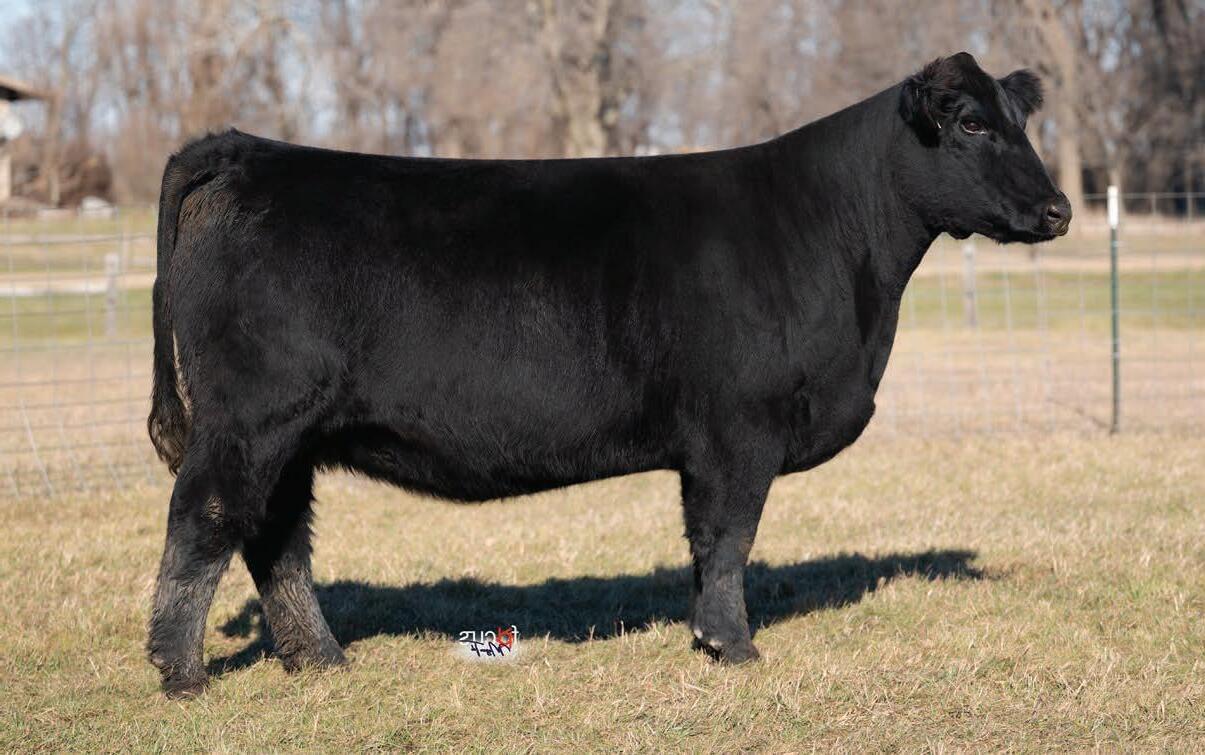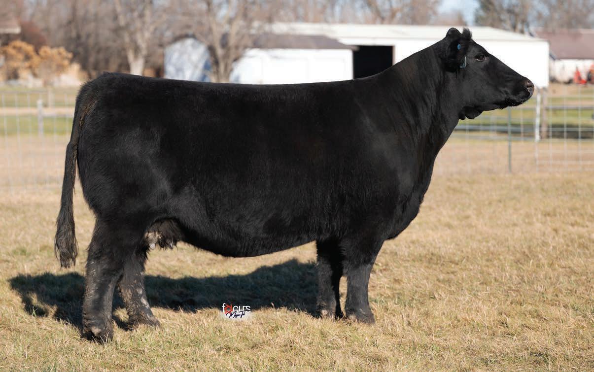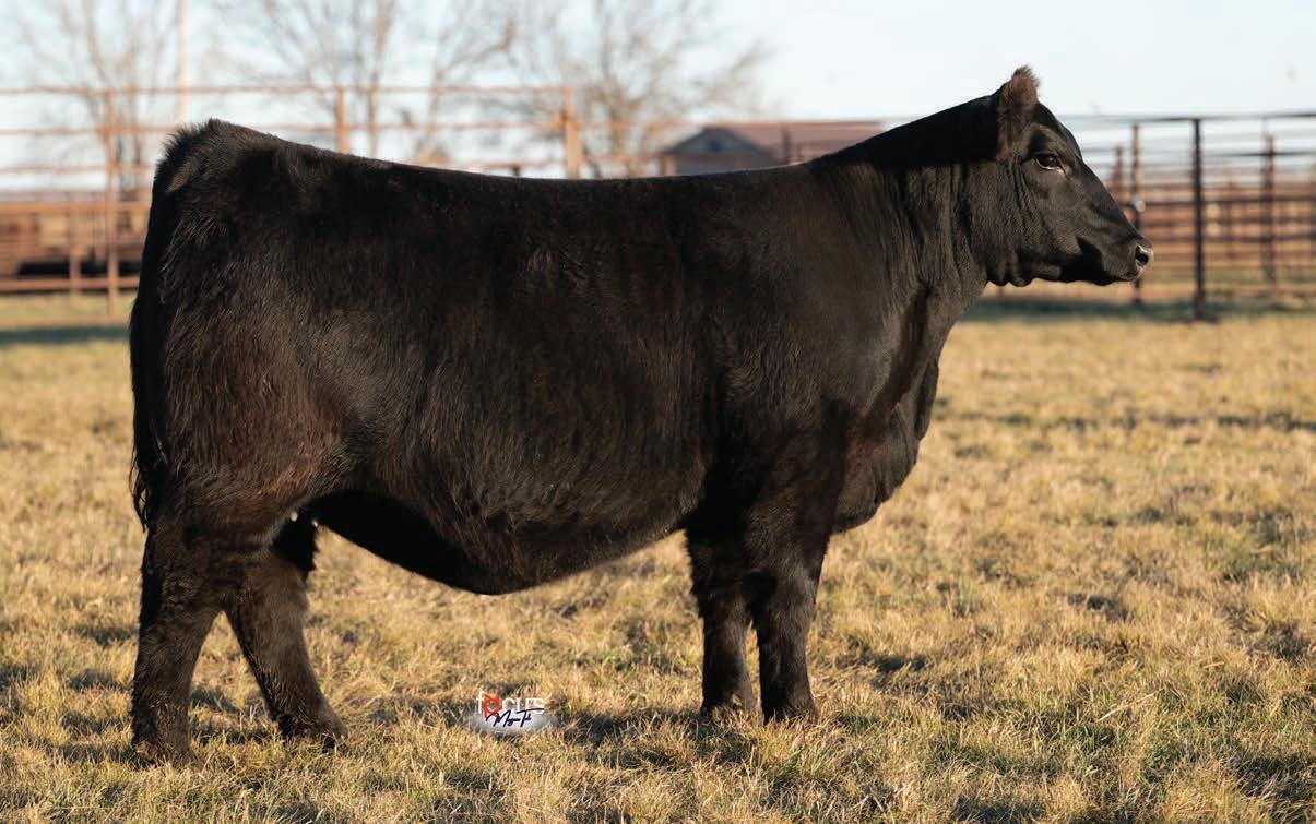 Due 3-24-26 to TJA Legacy. If your type is females with long necks, big round bendy legs, and some added length then this is your female. Sired by SSF On Point, a bull we owned with Sunrise Sunset Farms, who continually stamps his them with the same pieces we fell in love with in all of his calves. This heifer’s dam comes from the Bush Angus program, and was a dominant female for us for many years, consistently raising heifers that made the sale cut. She is a maternal sister to Bush Unbelievable. Angus | Pending | 2.24.24 | Polled | Black | 453